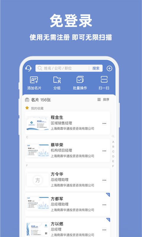 扫名片,真方便,不必注册账号也能使用;