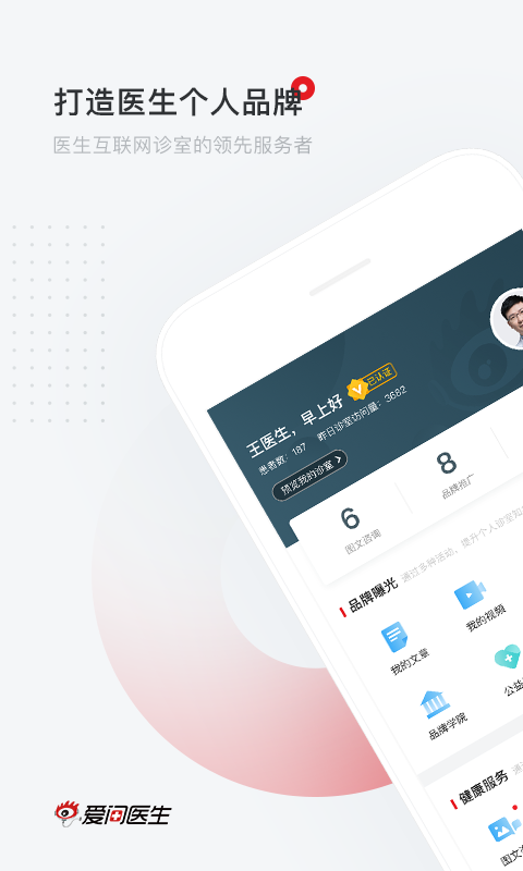 【品牌曝光】通过多种活动,提升个人诊室的知名度,包括品牌推广、公益咨询、好友互推等功能。