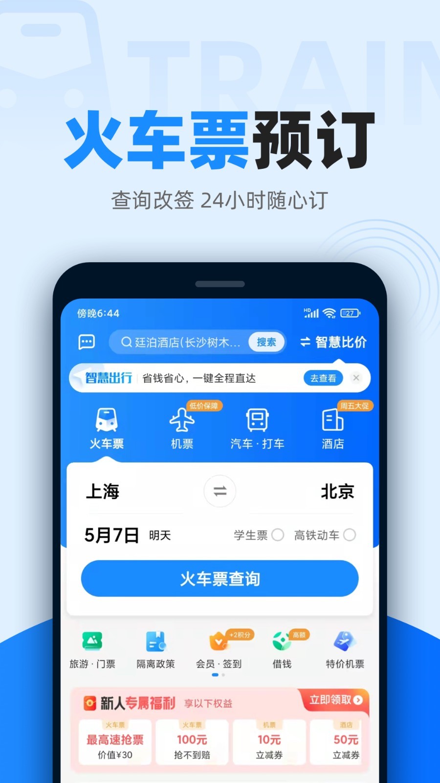 智行火车票12306高铁抢票 抢票神器来啦!会员权益再度升级! 【火车票】 新增火车票夹功能, 购票即可生...
