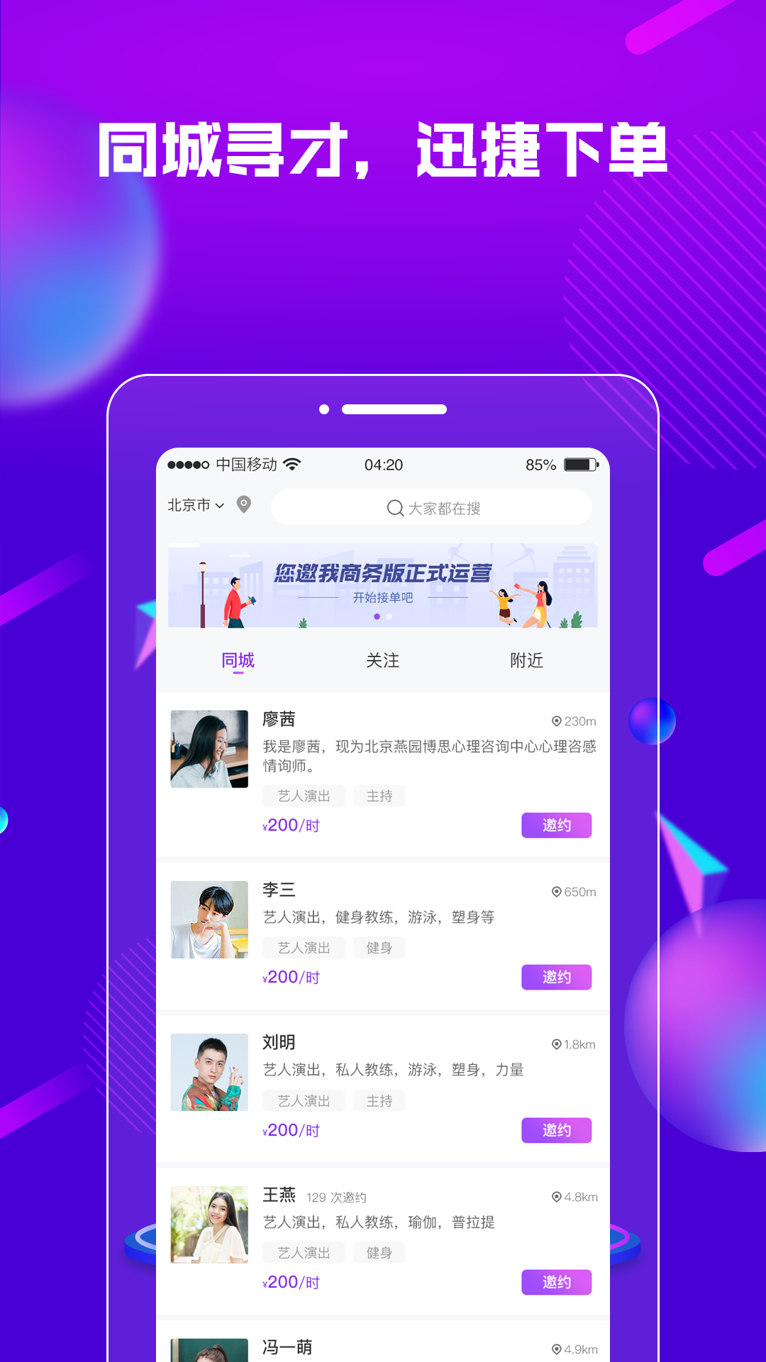 您邀我 本地就业的人,都在用您邀我! 您邀我是中国领先的O2O+2C灵活就业服务,汇聚上万...
