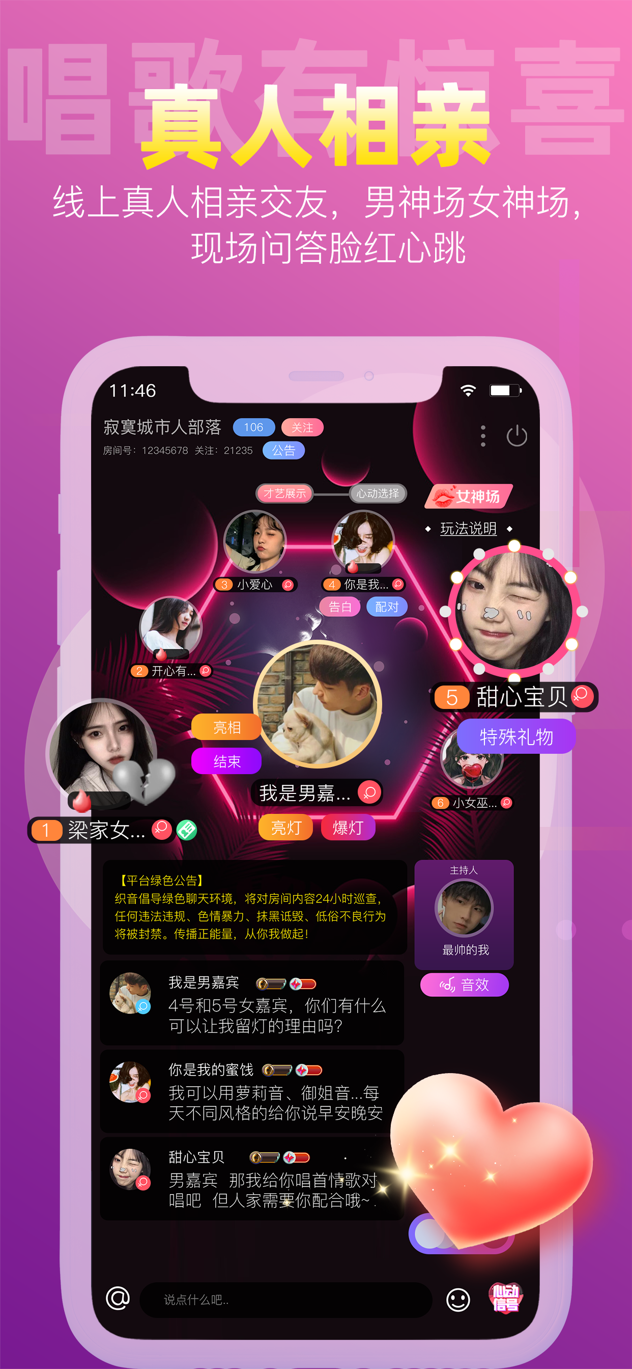 【真人相亲】线上真人相亲交友,男神场女神场,现场问答脸红心跳;
