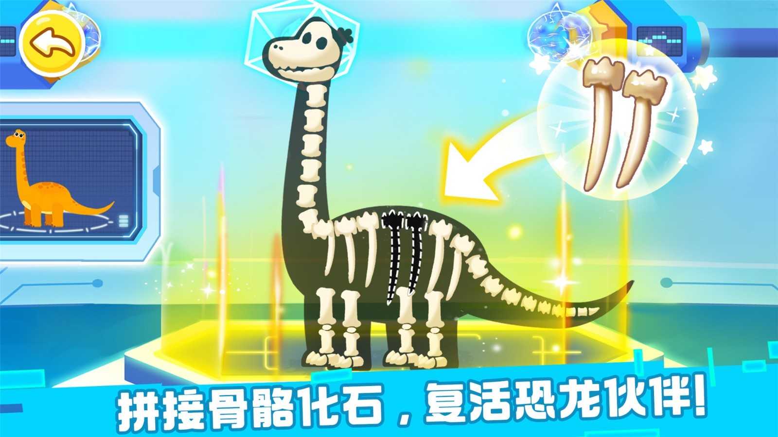 战斗导致不少恐龙遇难,别难过,用神奇的复活机器能让它们“重生”!不过宝宝需要找到它们的骨骼化石,按照恐龙骨架拼接,这时再启动复活机器,恐龙就能复活啦!
