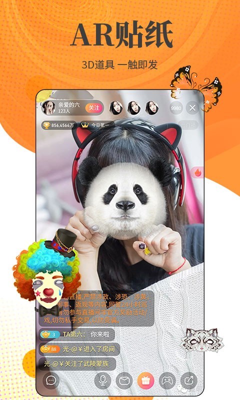 提供各种酷炫立体2D、3D贴脸道具,直播不再单调、乏味!