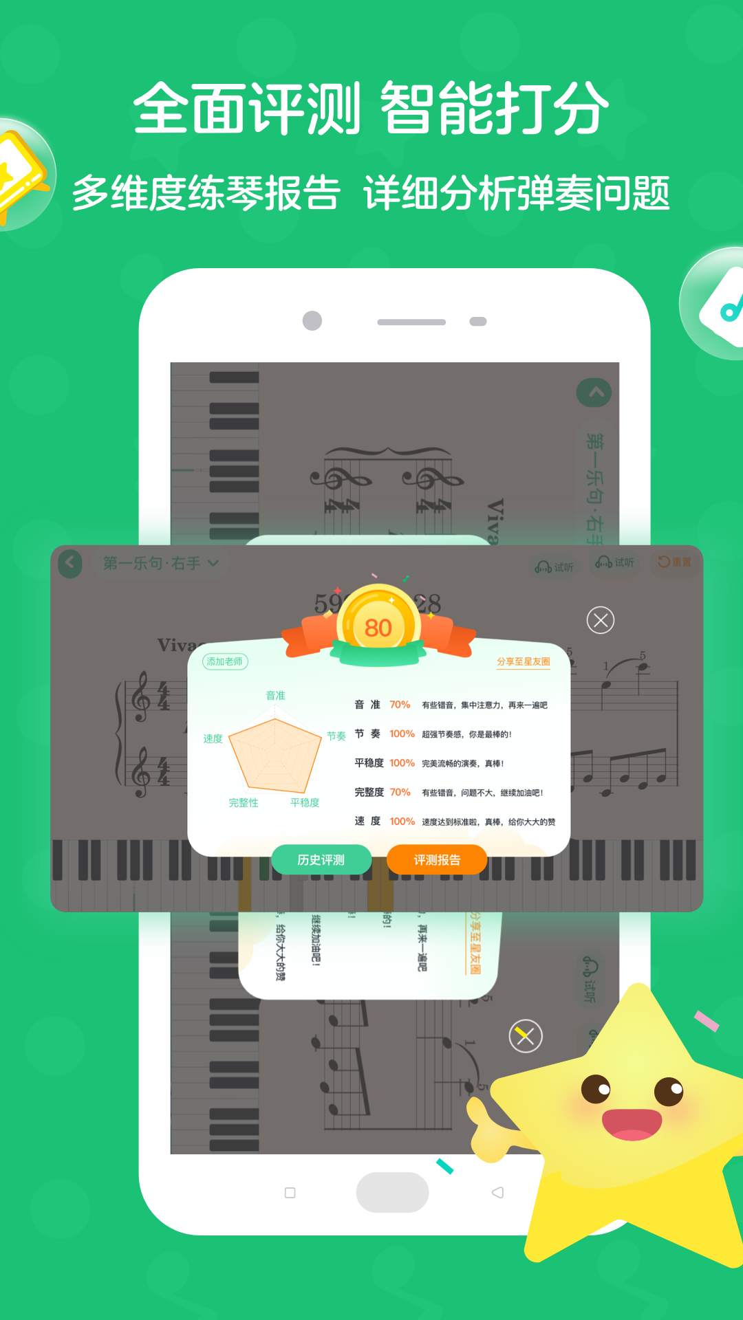 应用详情:小星星AI陪练由国内专业音乐团队倾力打造,旨在解决家长陪练缺乏专业知识、琴童课后练琴难以自查自纠的痛点,无需约课,24小时随时练琴,海量钢琴曲库,在家即可通过AI智能识别错音,改善练习节奏问题,一键生成练琴报告,练琴有反馈,练琴考级必备!