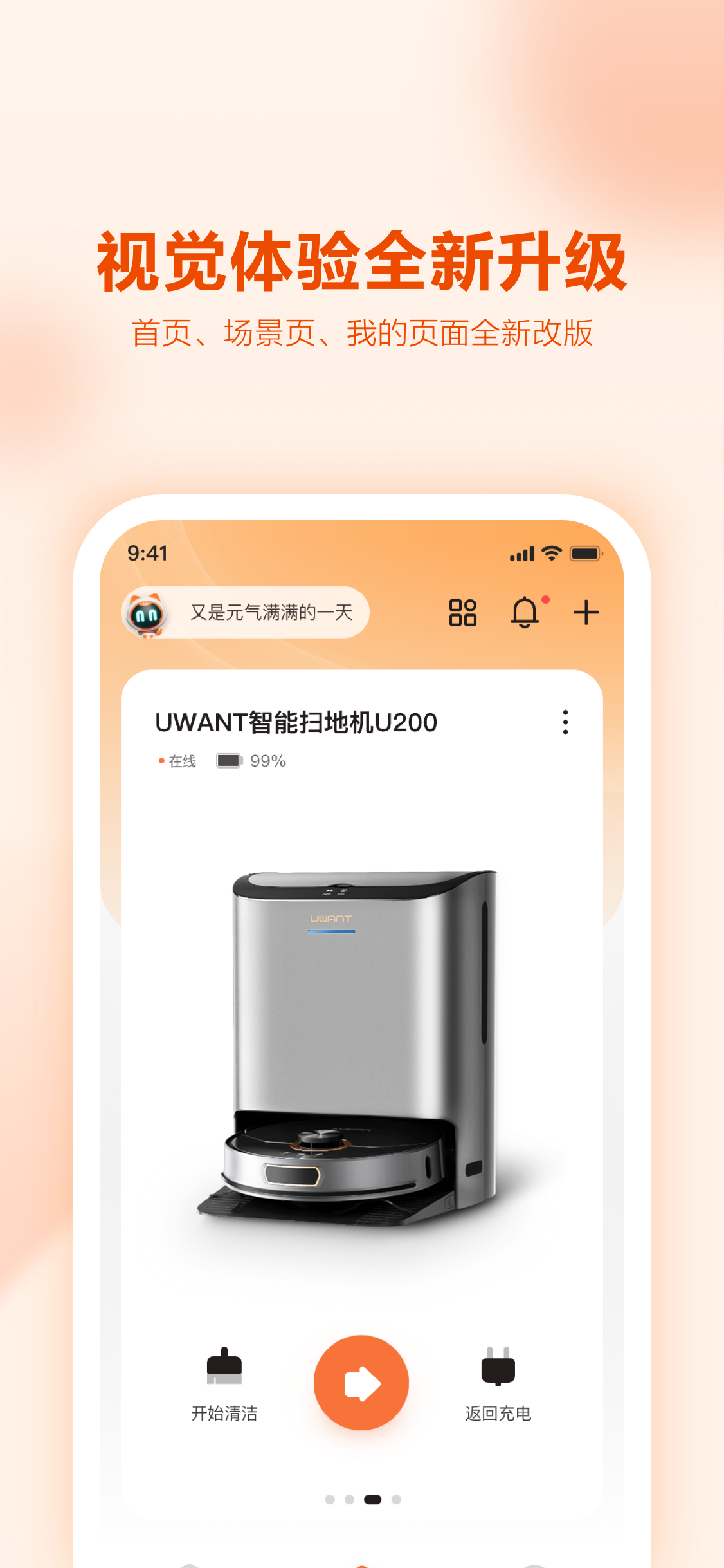 UWANT HOME App是连接UWANT旗下机器人产品的智能应用,你可以简单便捷地通过手机与机器人进行交互,随时随地控制机器人、查看清洁进程、制定清洁任务,为你打开智能清洁新方式。