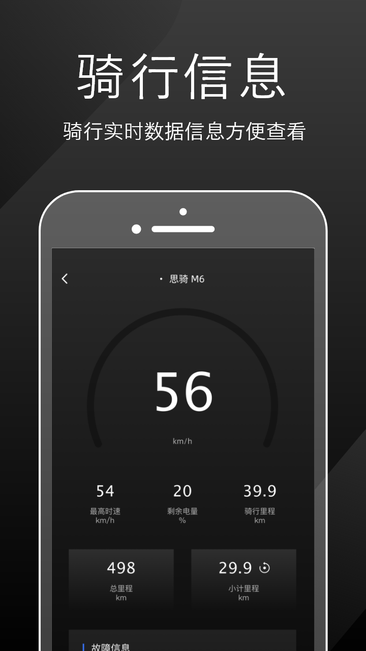 【骑行数据】:时速、高时速、骑行里程、总里程、电量、故障信息;