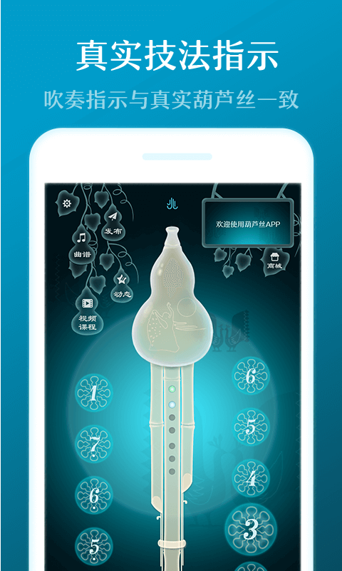 葫芦丝是最简单的民族乐器之一,让葫芦丝成为您的第一个启蒙乐器,手机就能演奏葫芦丝。跟着APP,短时间学会《沧海一声笑》、《青花瓷》等入门歌曲。