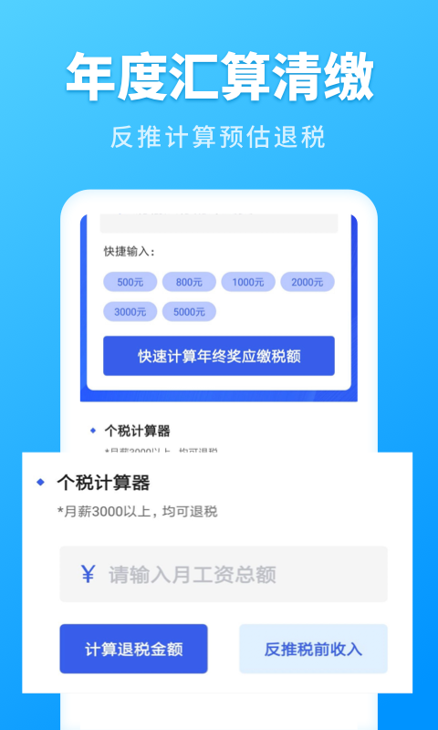 应用详情:个人所得税速算,专业的个人所得税app,,帮你快速计算个人所得税,轻松解决个税问题。