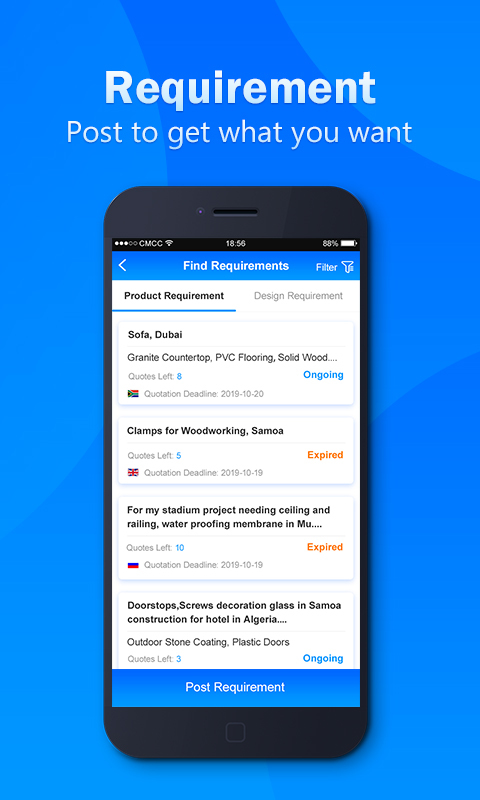 如果您是家居建材供应商,您可以通过这个应用程序展示产品,寻找商机以及随时随地回复询盘;