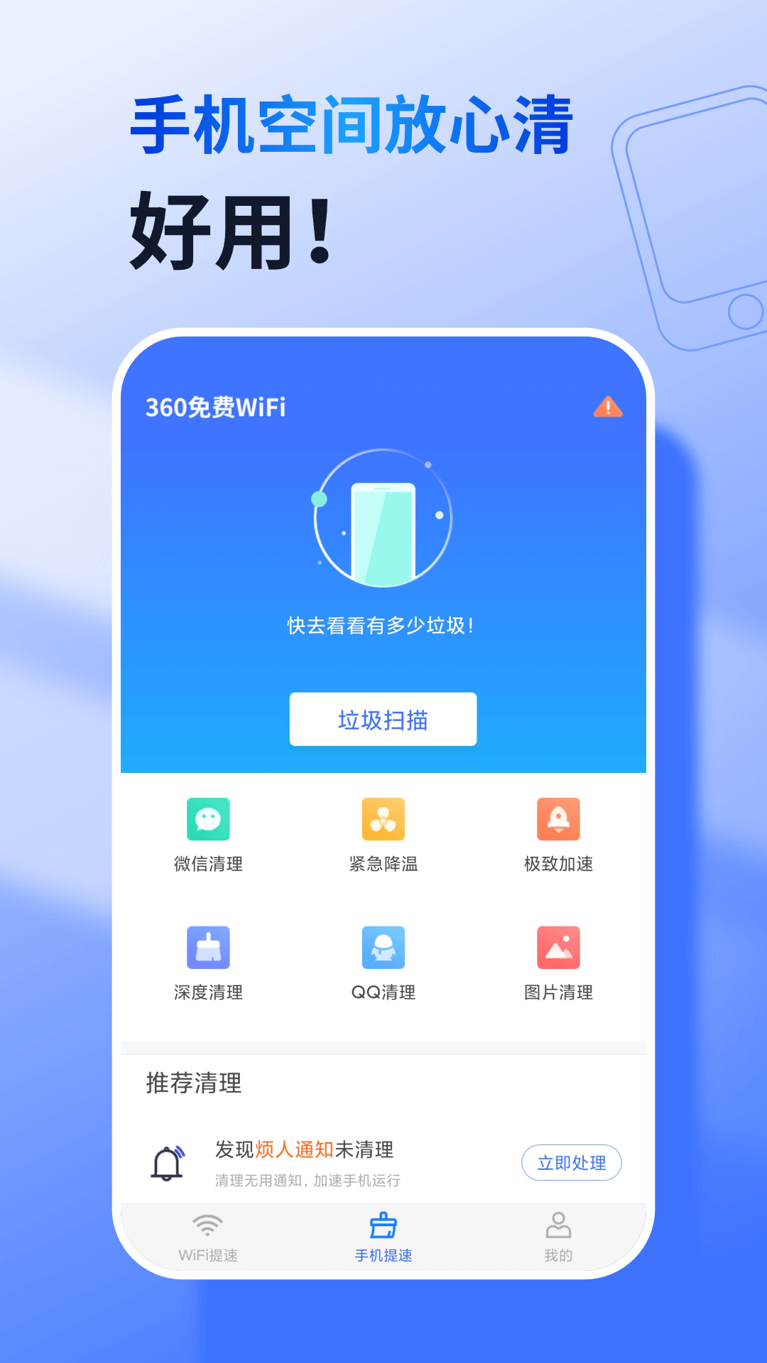 应用详情:360免费WiFi是一款安卓端的WiFi管理软件,通过对手机所连接WiFi的属性进行分析,检测联网环境与各项参数配置,提供WiFi安全检测、网络测速等功能,帮助用户更便捷的管理和使用WiFi。
