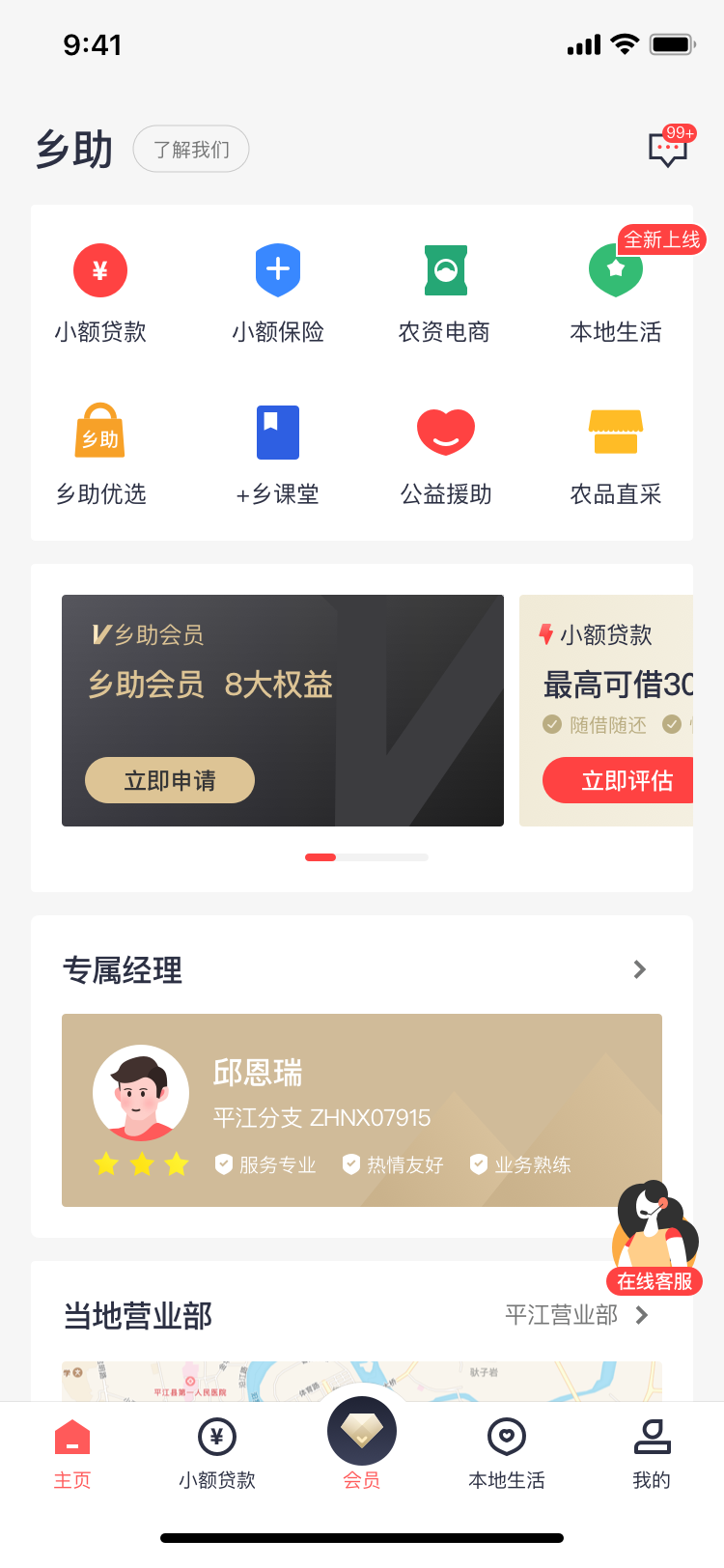 乡助 中和金服全面升级,重新整合“本地生活”、“乡助优选”、“+乡课堂”、“紧急救...