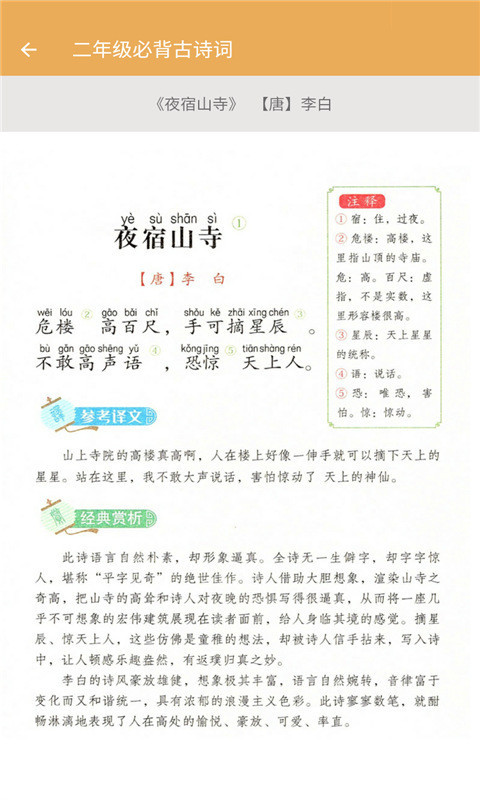 5、诗词帮:总结本册的古诗词,包括注释、译文和简介。