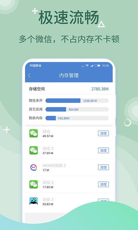 ●不单免费双开,分身个数不限制,所有应用游戏都能多开分身;