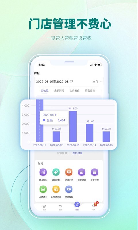 八大功能板块:收银支付、商品管理、会员管理、员工管理、积分管理、库存管理、财务报表、营销拓客。为众多实体门店解决库存盘点难、会员维护难、员工管理难、成本核算难、拓客引流难等多个痛点,全面满足门店经营需求,轻松管店简单经营。