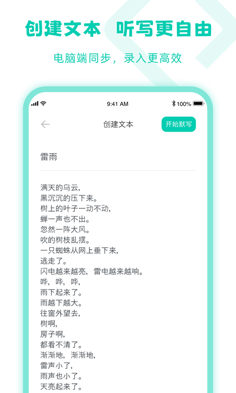可自定义创建文本,文本自动生成语音而支持听写,让听写无局限。