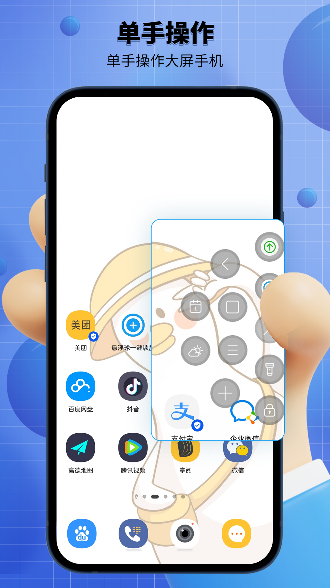 创新性的悬浮球长按操作,可以自定义为桌面、锁屏或其他操作,使用更方便。