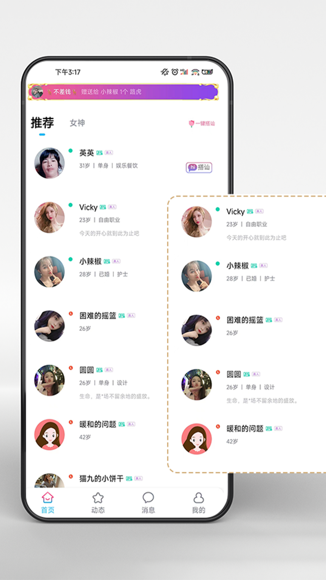 我们致力于为用户打造真实高效的扩列、处对象、恋爱、交友类真实脱单APP。