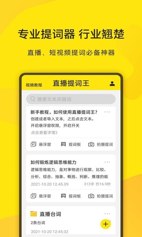 【悬浮窗提词器】开启悬浮窗功能,创建文本或导入文本,打开任意拍摄软件即可搭配悬浮窗提词器使用。支持边播边看台词,悬浮提词智能拍摄,告别多手机提词。