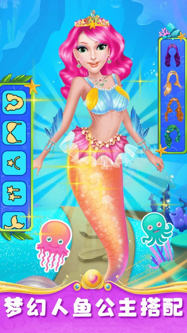 欢迎来到美人鱼公主梦幻美妆,美人鱼公主即将要参加家庭聚会,但是现在它她还没有打扮和整理房间,现在需要宝宝们来帮助她。