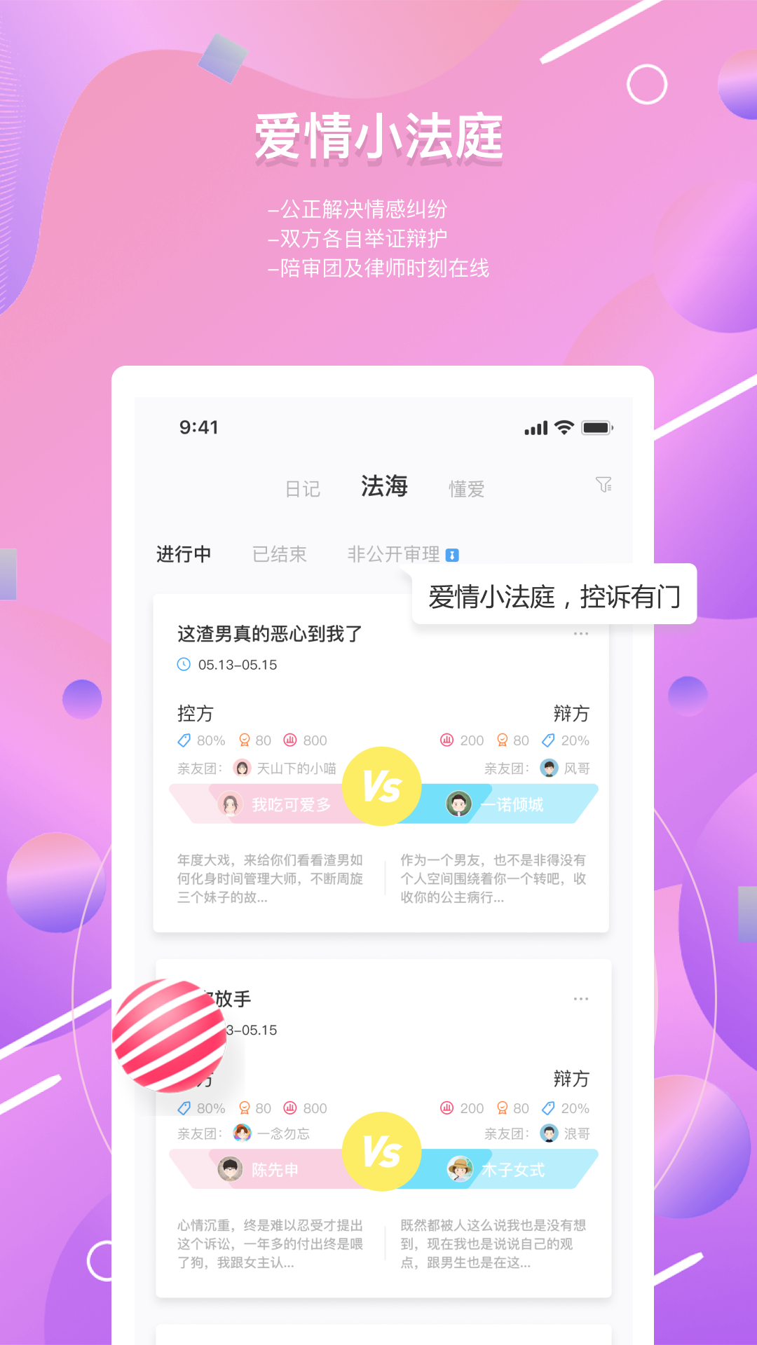 应用详情:糖果日记app是以“合约恋爱”为主题的恋爱保障平台。在这里,您可以和另一半签订恋爱合约,成立共同账户,约定恋爱期间彼此的权利义务。我们将通过爱情小法庭的方式保障合约被有效的执行,违约方将会承担对应的违约责任。