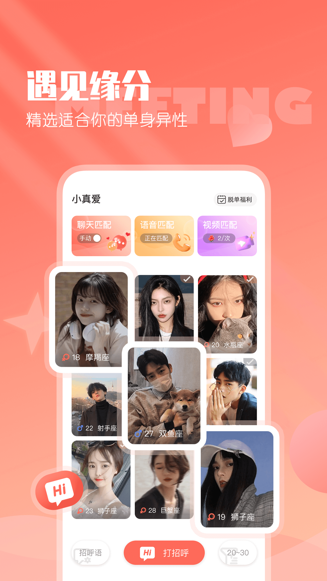我们是专业的婚恋征婚平台,一键向附近的人打招呼,免费使用超级喜欢特权,陌生人也能轻松破冰。资料全面使用方便,许多同城单身朋友在这里亲密互动、聊天交友、视频相亲,真心真诚找对象。另奉上脱单福利:男士注册免费送玫瑰,女士参与音视频赚金币。
