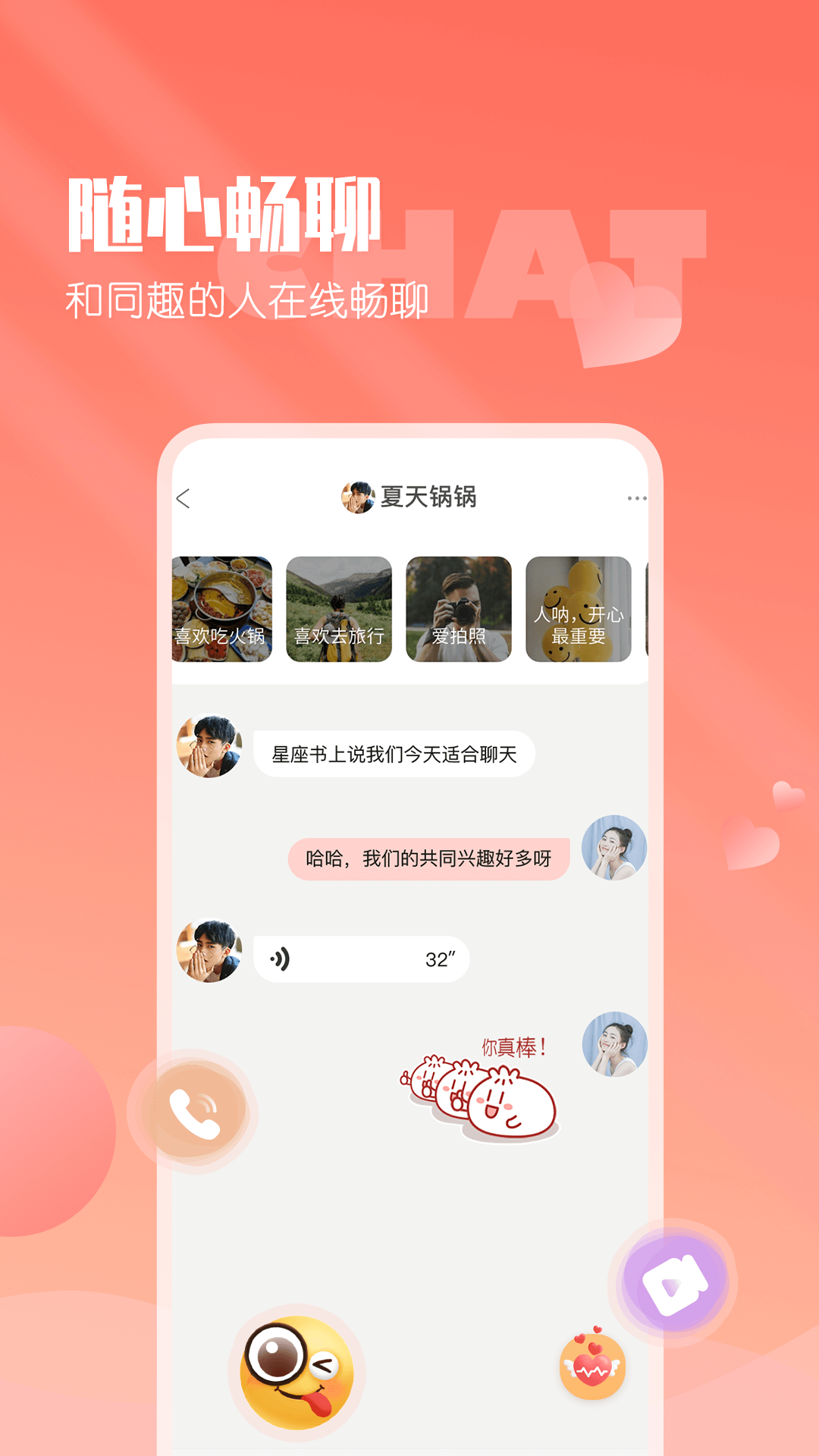 【聊天互动】:趣味动图、情话开撩、语音约会、视频见面、互动游戏,极速脱单;