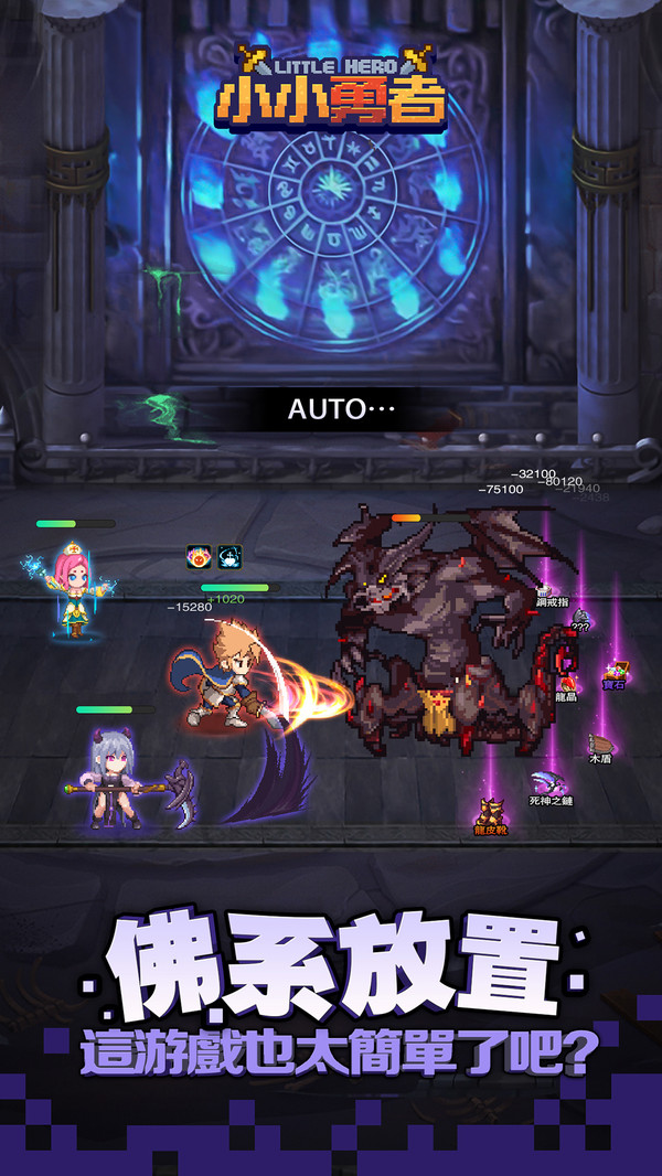 这是一款拥有放置元素的RPG游戏,结合了充满怀旧情怀的经典像素画风。你可以派出属于自己的勇者,通过不断地壮大自己以及队友的实力,一路披荆斩棘,最终从魔族手里夺回家园!