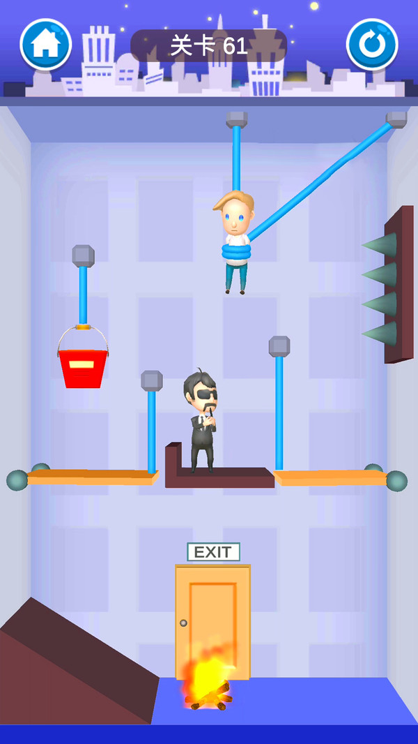2.物理性十足的绳索切割玩法,想要拯救更多的人你必须掌控更完美的技巧。