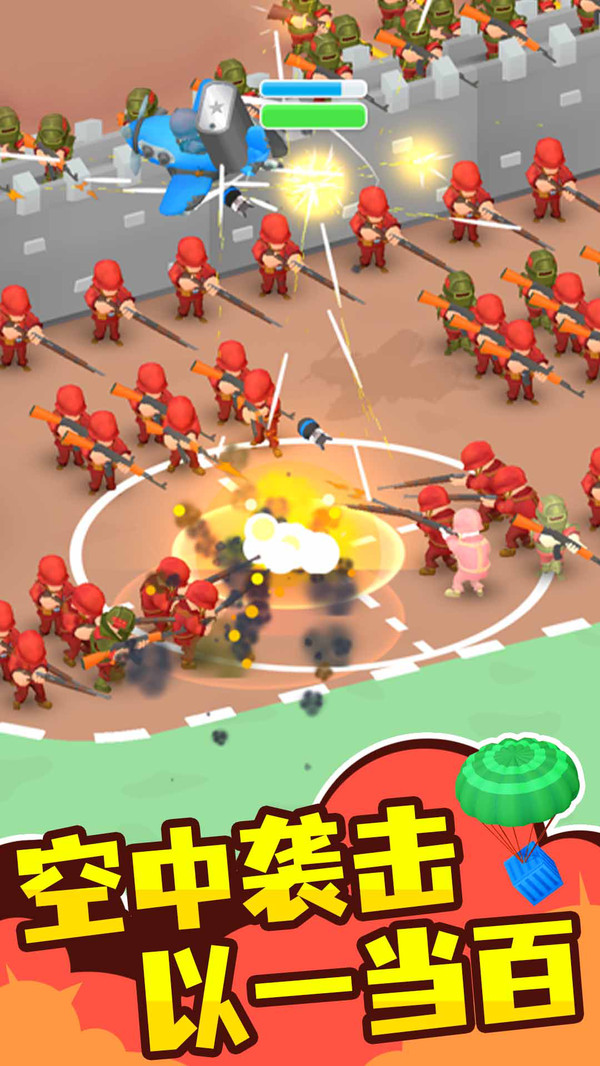 譬如玩家可以驾驶战斗机从空中对敌人造成覆盖式火力打击,也可以呼叫空中支援,让直升机与机枪来为你开路,更可以启动终极武器对敌人进行毁灭冲击!每一种策略性的玩法,将决定你的通关速度、时长以及评分,加油吧,战斗的艺术家!