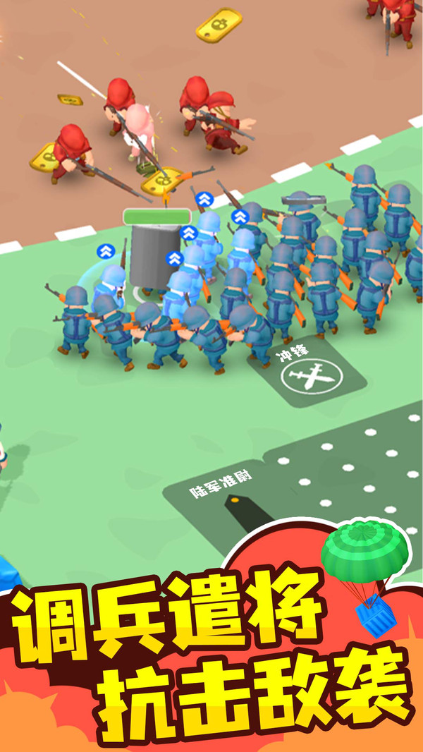 《小小指挥官》是一个有趣的策略放置游戏,玩家在游戏中需要搭建自己的兵营用于士兵招募,提升自己的队伍容量上限,当招募士兵数抵达上限的时候,可以派遣士兵对敌军进行袭击,当你消灭了所有敌人后,并将敌人的旗帜降落,你将占领这一片土地,进一步的开拓你的领土面积,在游戏中还有许多有趣的互动道具