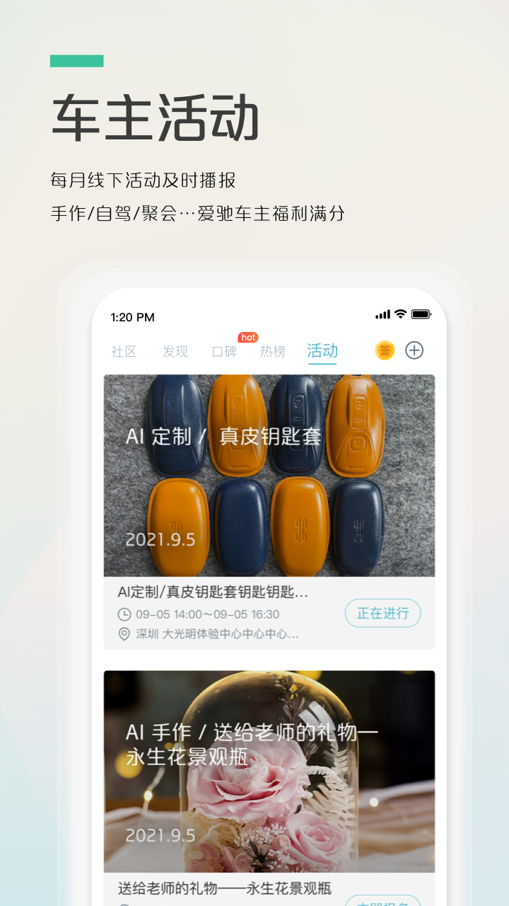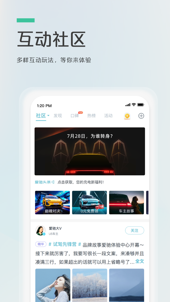 【车友圈】加入爱驰社区畅所欲言,以及新的品牌资讯,活动信息,知识分享,话题和投票