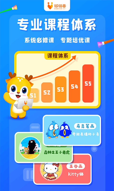 VIP陪画在线少儿美术课程体系依据亚洲美术研发中心所提倡的五个核心素养为基础,同时融合21世纪核心素养及国内外先进的教育理念,遵循各年龄段孩子的成长规律;研发的一套结合专业美学、教育心理学、自然学科、社会人文学科等,力求教学边界的拓展启发与融合创造的综合艺术素质提升课程。