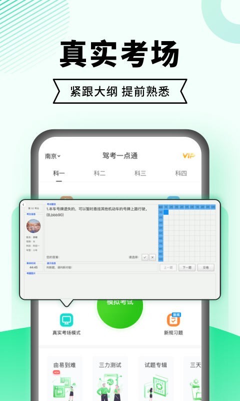 1.全新交规题库同步更新,支持多车型专用试题练习;