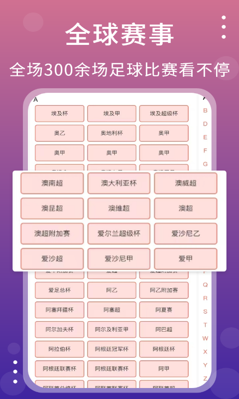 【赛事全面】覆盖全球足球篮球等热门赛事信息,包括世界杯、奥运会、美州杯、欧冠杯、亚冠杯、中超、英超、西甲、德甲、意甲、法甲、日职联、韩K联、澳超、NBA、CBA、主流联赛、五大联赛等地区性乙级联赛均有收录,满足所有体育爱好者;