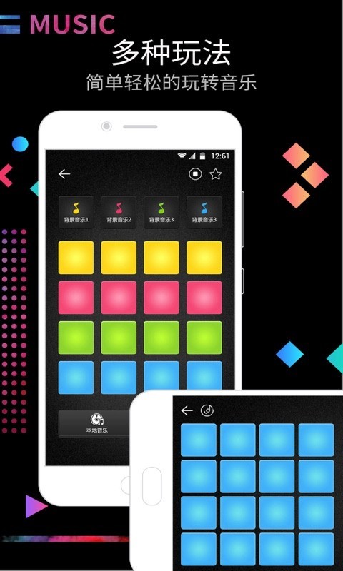 应用详情:打击垫是专为爱听爱唱爱玩的你设计的一款DJ打碟混音器&节奏器,集打击垫,节奏垫,电音垫,节拍器多功能与一体的音乐制作软件,给你不一样的魔力混音音效,带你玩转电音节奏。只需手指轻轻点击DJ打击垫的彩色键盘,即可敲出你喜欢的DJ电音节奏,在家也能嗨到爆,随时随地录制属于你的打击乐!