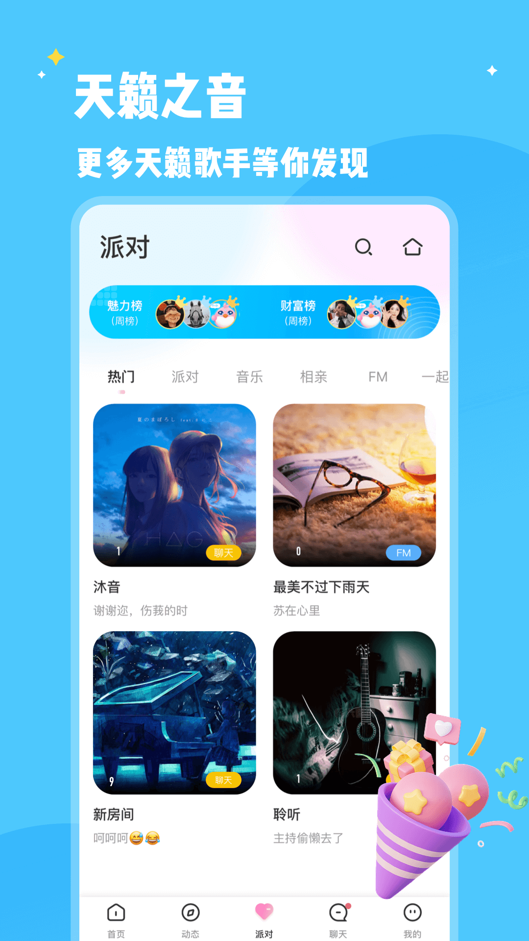 语音派对:创建房间一起玩转语音盛宴,音乐、电台、唱歌聊天邂逅好声音。