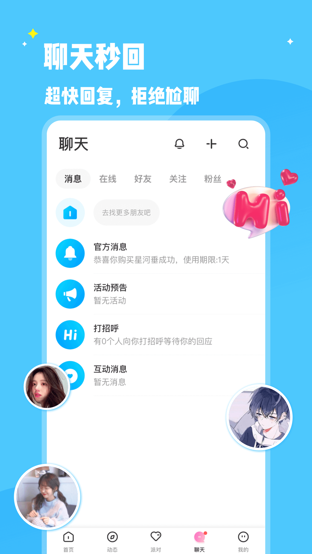 聊天互动:语音消息让你告别打字,动态表情让聊天更加有趣。