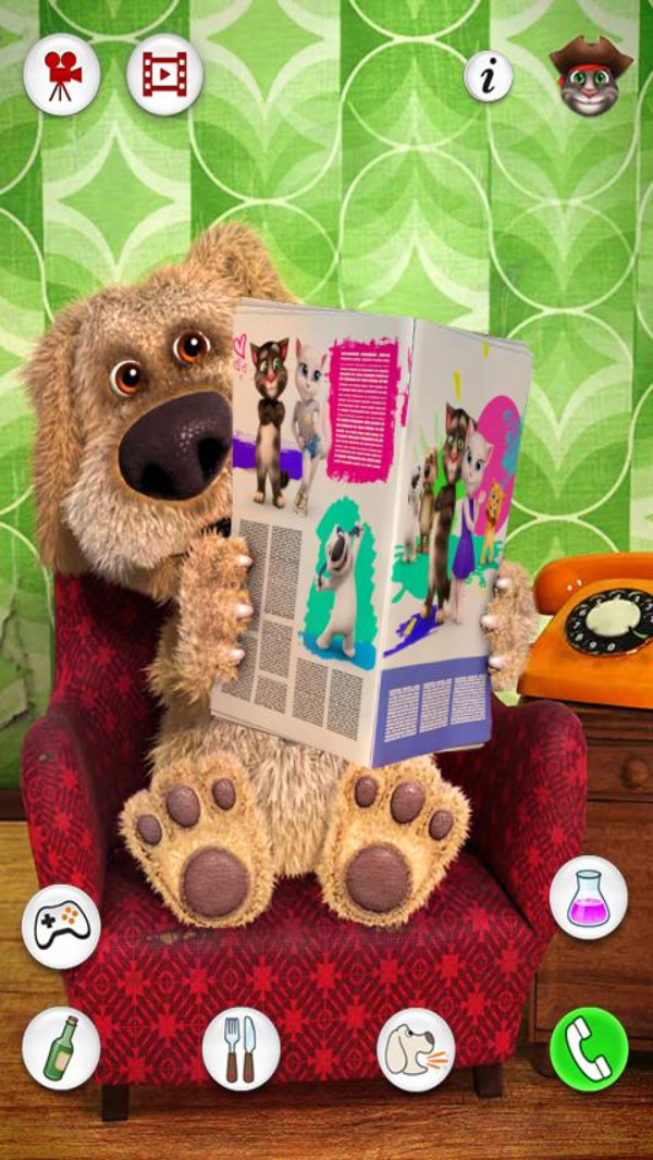 狗狗本是一名退休的化学教授, 他很享受品尝美食、美酒和阅读报纸的惬意生活。要使他做出反应, 你需要烦扰他足够长的时间, 这样他就会合上手中的报纸。你还可以和他说话, 戳他或挠他痒痒, 甚至跟他电话交流。
