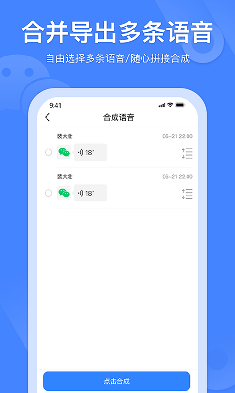 语音转发合并 语音转发合并是一款专业高效的微信语音转发软件,具有原声转发,变声转发,分享...