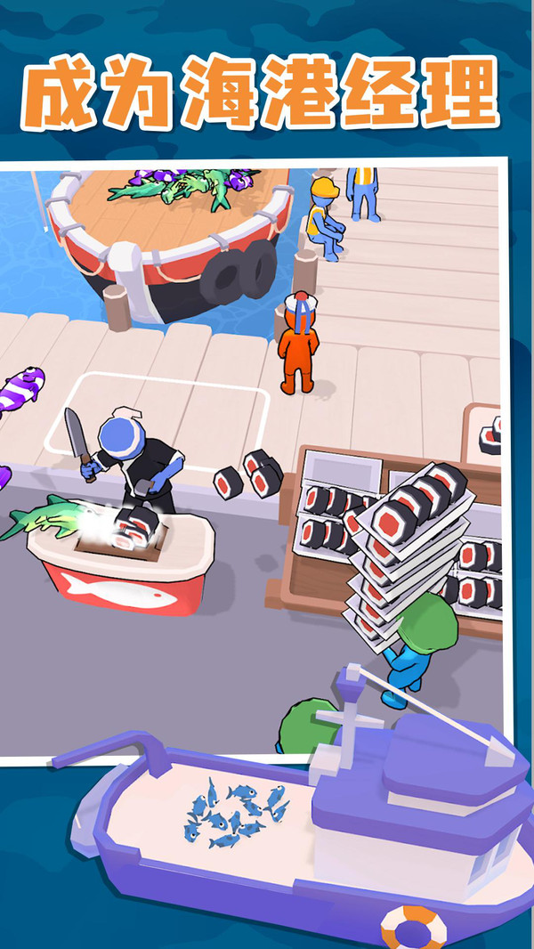 《海鲜市场》是一款画风清新简洁的休闲经营类游戏,在这个海港上班,逐渐成为一名老板,不断地扩大自己的海港事业,招募大量的员工,和你一起进行管理,每完成一次海港运输任务的话,都可以获得相应的奖励。管理自己的海港,对它进行建设和使用,努力获取更多资源。雇佣员工,搭建海港设施,出海捕鱼等等,海量任务等你前来完成。探索未知的海洋,还有很多迷你小游戏蕴含其中,但基础还是海边贸易。