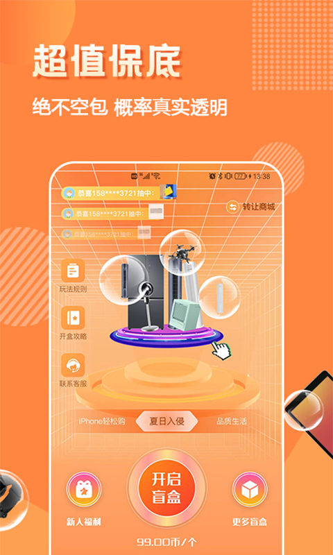 商品价值≥开盒价值,满意就提货,不满可回收或转让。优质大奖不断供,抽奖概率公正公开,马上实现你的梦想!