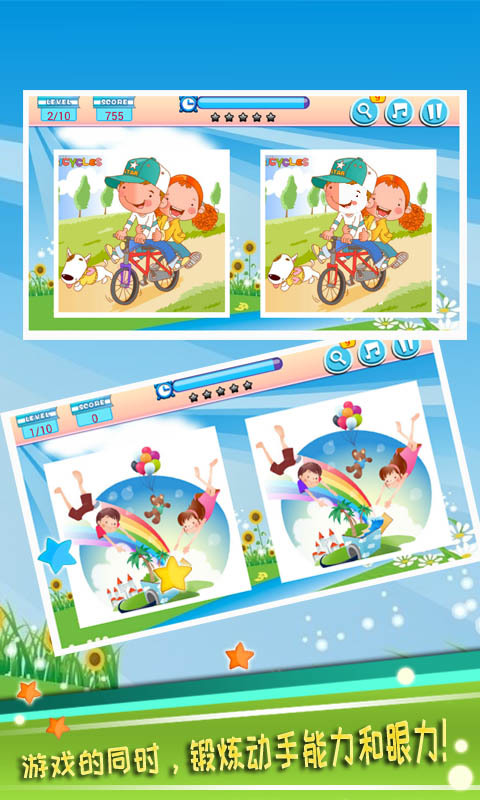 儿童益智找茬游戏是专门为儿童准备,尤其是2-10岁智力发育非常关键时期的儿童准备的,主要是为了锻炼儿童的智力发展水平的小游戏,带有一定的思考和策略性。