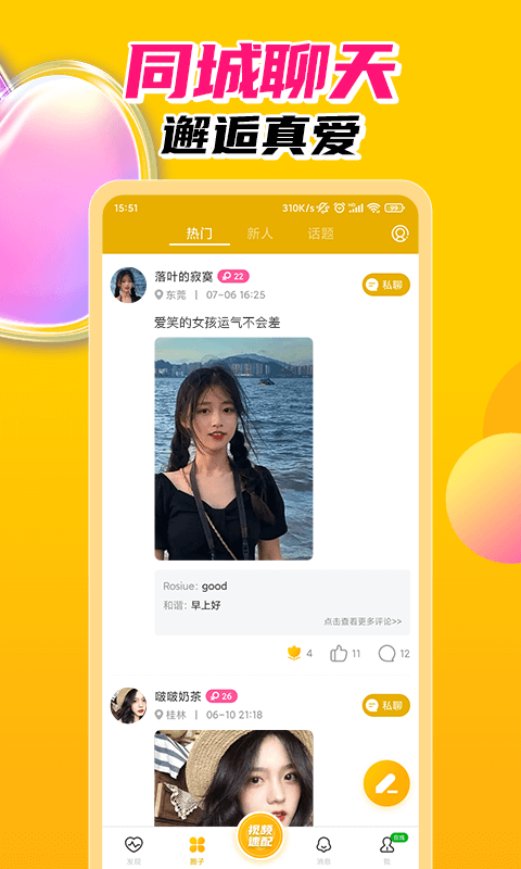 探春视频聊天交友 探春视频聊天交友,附近陌生单身男女交友、恋爱、聊天;同城近距离快速匹配,通...