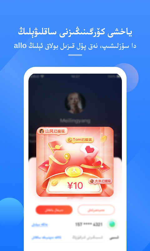 ●福利不停:用allo通话,即可获得现金奖励,通话的越多,赚的越多;