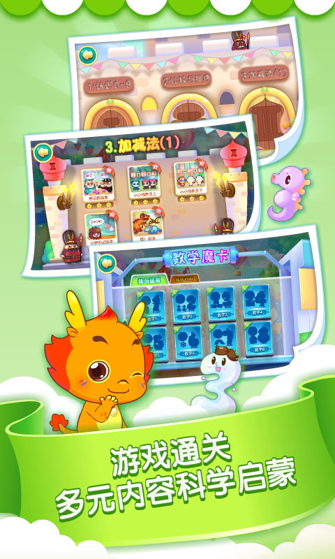 口算益智游戏:以游戏关卡的形式,让孩子初步认识加减法。