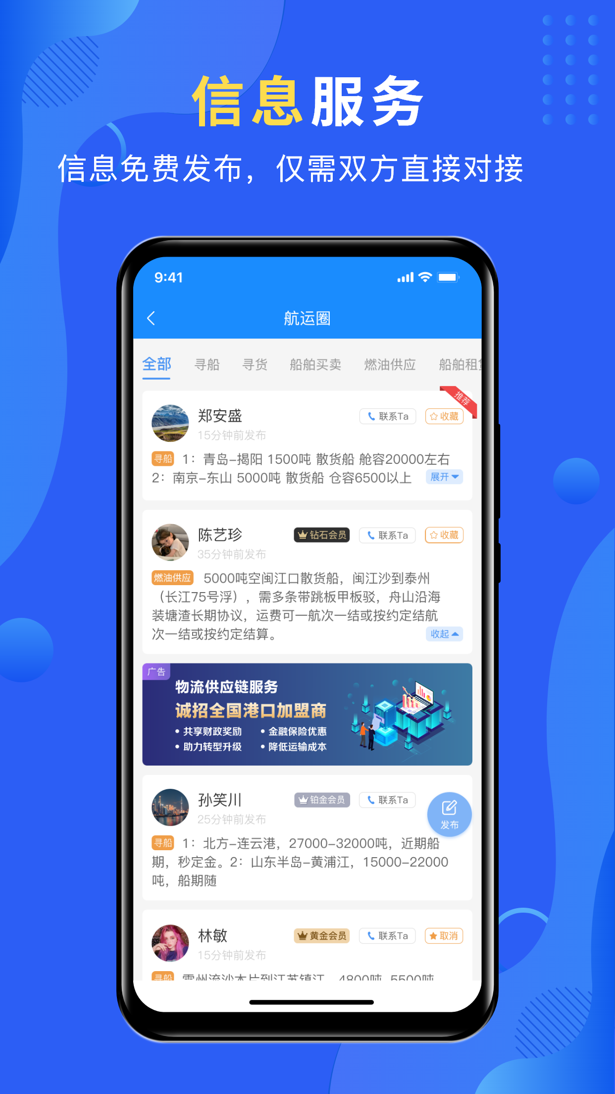 应用详情:携船网互联网+海运产业链电商平台。提供船舶定位、船舶保险、供应链金融、航运圈船期、货盘、燃油供应、港口服务、船舶买卖、船员招聘、海洋工程、船舶设备、船舶配件、航运资讯、海运招标、船舶定位、在线交易、船舶保险代理、货物保险代理、海洋气象、运价行情、海运商城、海事法律、航运金融等服务。