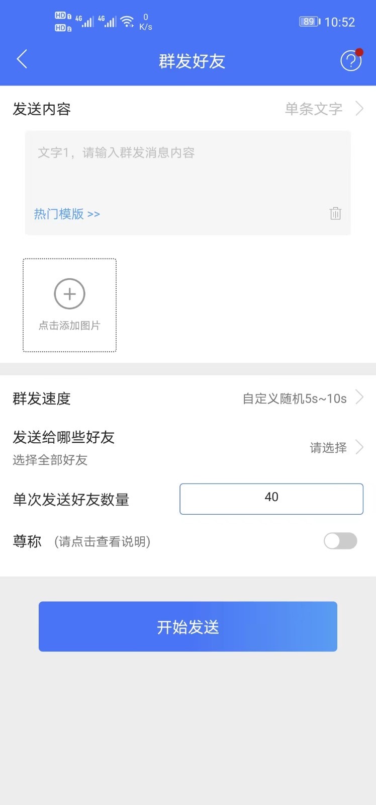 1、【多种消息群发方式】:支持文字、图片、文章、公众号甚至小程序各种群发,微信消息群发更容易。方便快捷,一键群发,是微商用户在工作过程中不可缺少的微信群发软件。