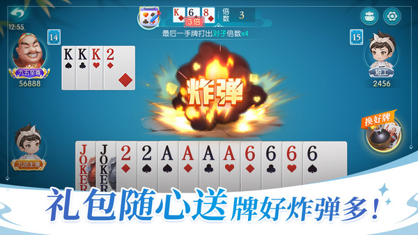 网络不好就卡顿?不会,网络再差也不卡! 玩几局就没金币?不会,长久畅玩无限制! 出牌太慢被托管?不会,出牌节奏由你定! ----游戏特色----- 【智能单机】挑战人工智能,段位升级测实力! 【真人对决】真人斗智斗勇,挑战排行天天赢! 【刺激体验】炸弹多多,超级翻倍停不下! 【超级豪气】福利多多,全部道具免费赢!