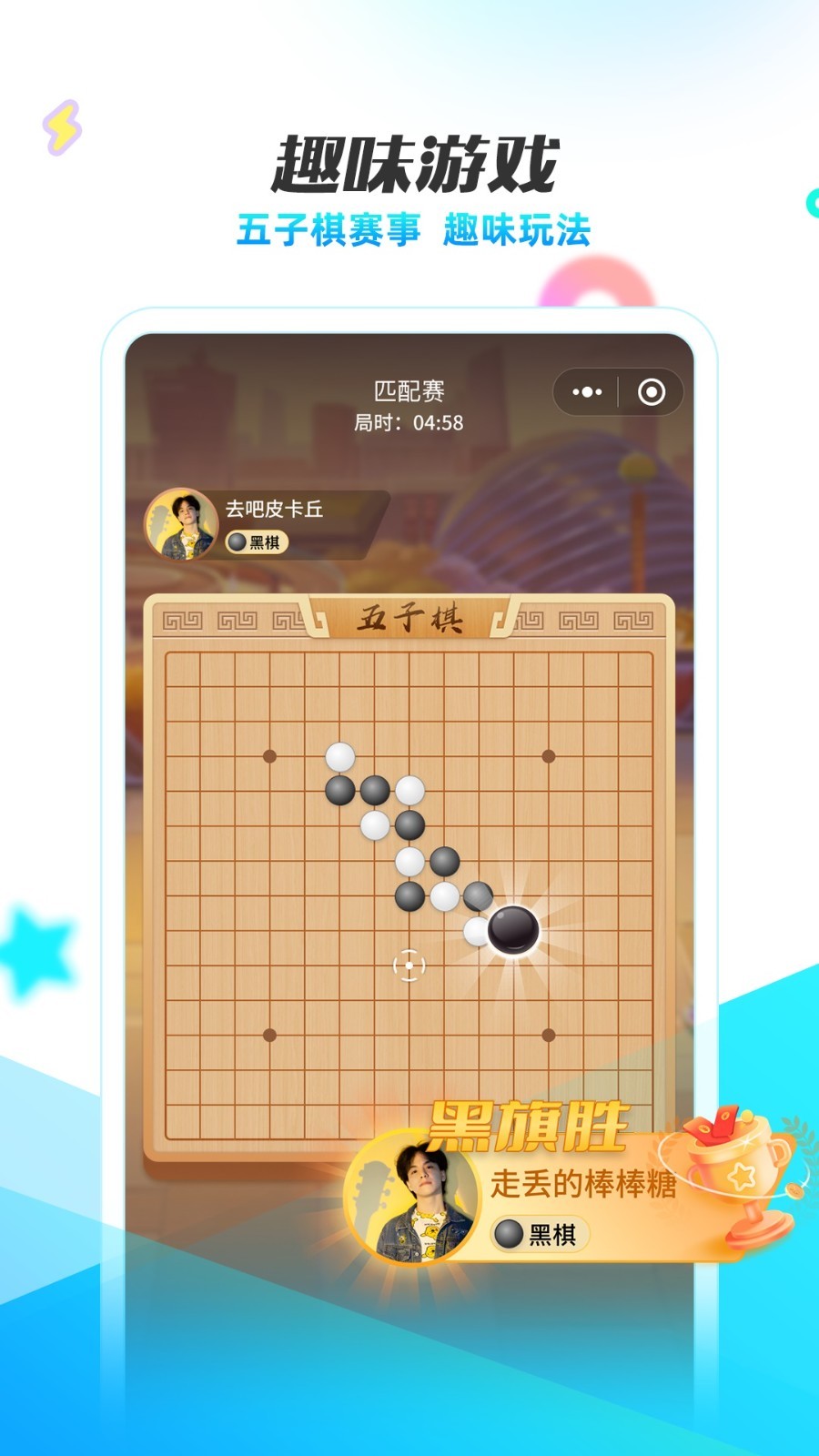 【小游戏玩法】新增五子棋大赛,在线匹配,好友PK等趣味玩法。