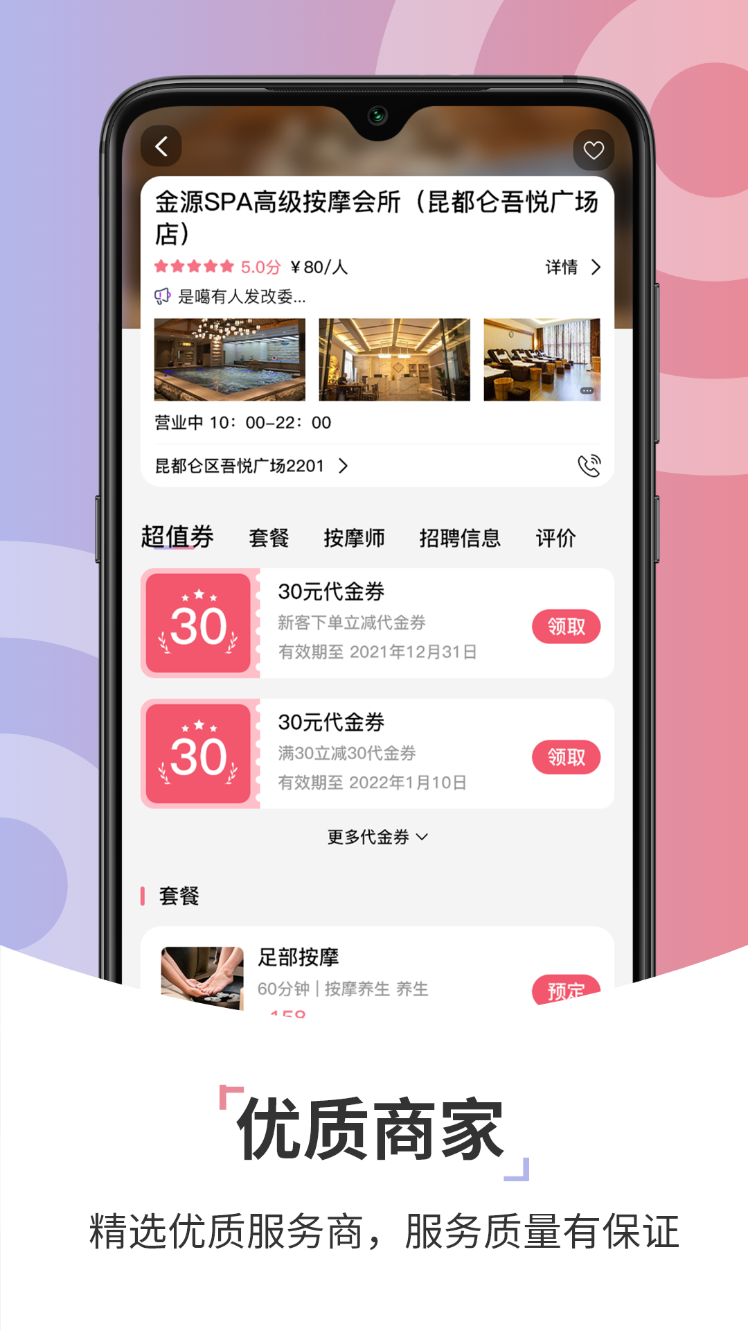 方便好用的生活APP!打造智慧生活,幸福养生的生活服务APP。提供包括上门按摩、足疗、SPA、养生、小儿推拿、康复治疗、理疗、艾灸、刮痧、拔罐、修脚、采耳、脏腑调理、精油开背、脊柱校正、颈椎病治疗、失眠改善、肩周炎治疗、落枕推拿等服务,康养智家提供专业的技师资质认证信息,真实的消费者评价。